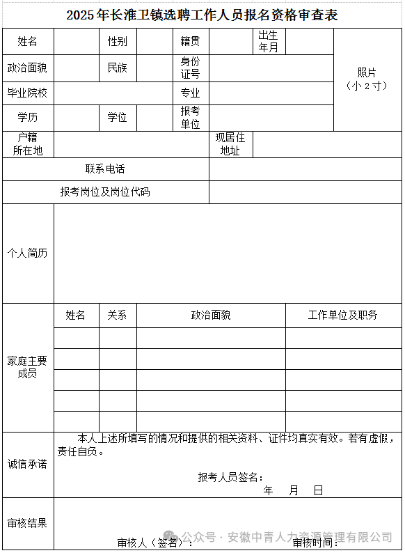 附件1:2025年長淮衛(wèi)鎮(zhèn)選聘工作人員報名資格審查表