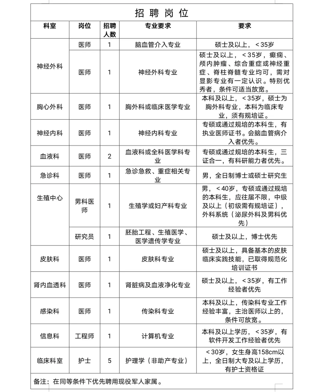 醫(yī)院根據(jù)工作需要,急招醫(yī)療、信息科等部分崗位若干名。(具體見下表)