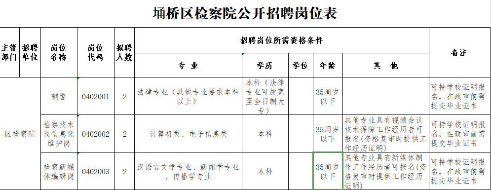 2020-11-14 23:22:53閱讀()安徽省宿州市埇橋區(qū)檢察院按照《宿州市埇橋區(qū)人民政府辦公室關(guān)于印發(fā)埇橋區(qū)政府購(gòu)買服務(wù)崗位管理暫行辦法(試行)的通知》(埇政辦秘〔2017〕118號(hào))和《宿州市埇橋區(qū)人民政府辦公室關(guān)于印發(fā)進(jìn)一步規(guī)范埇橋區(qū)政府購(gòu)買服務(wù)崗位管理實(shí)施意見(jiàn)的通知》(埇政辦秘〔2020〕16號(hào))的有關(guān)規(guī)定,宿州市埇橋區(qū)人民檢察院委托埇橋區(qū)勞動(dòng)事務(wù)代理中心,以政府購(gòu)買崗位的形式面向社會(huì)公開(kāi)招聘檢察工作人員,現(xiàn)就有關(guān)事項(xiàng)公告如下: