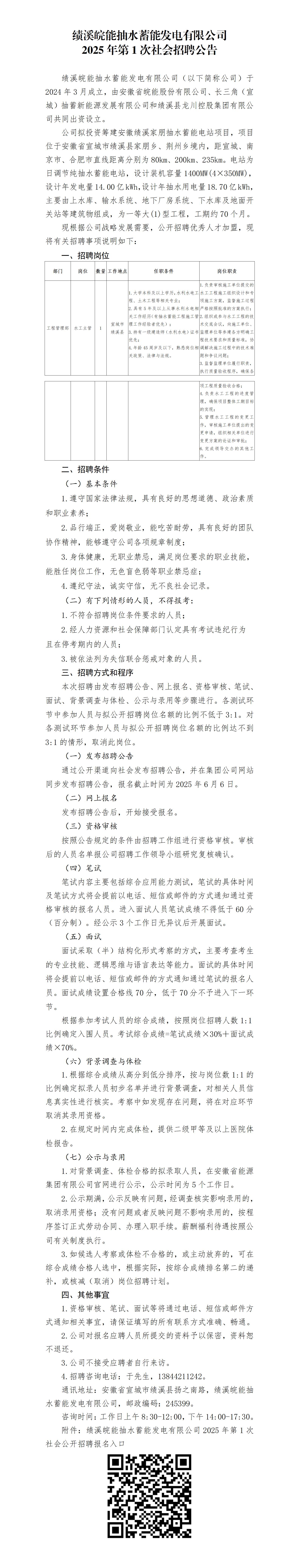 2025年宣城績(jī)溪皖能抽水蓄能發(fā)電有限公司第1次社會(huì)招聘公告