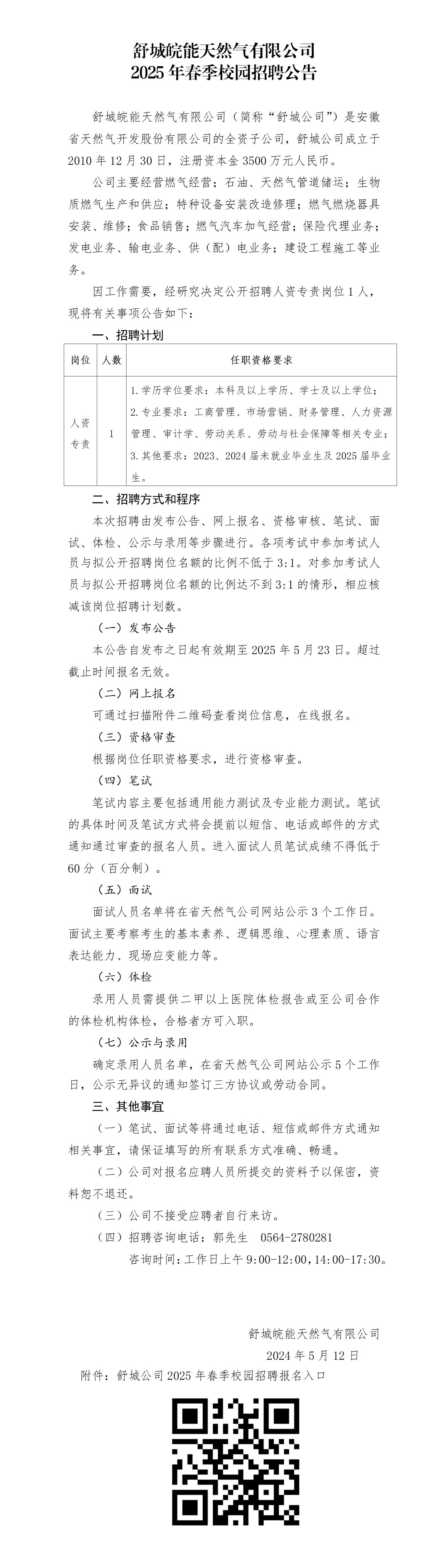 2025年六安舒城皖能天然氣有限公司春季校園招聘公告