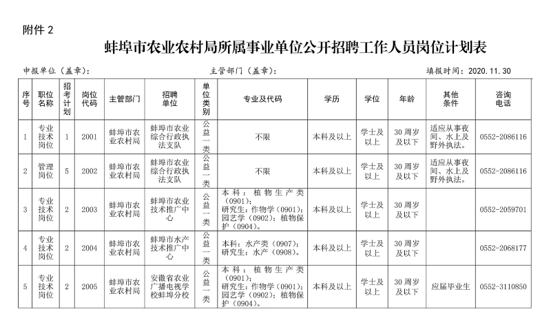 附件:蚌埠市農(nóng)業(yè)農(nóng)村局所屬事業(yè)單位公開招聘工作人員崗位計劃表