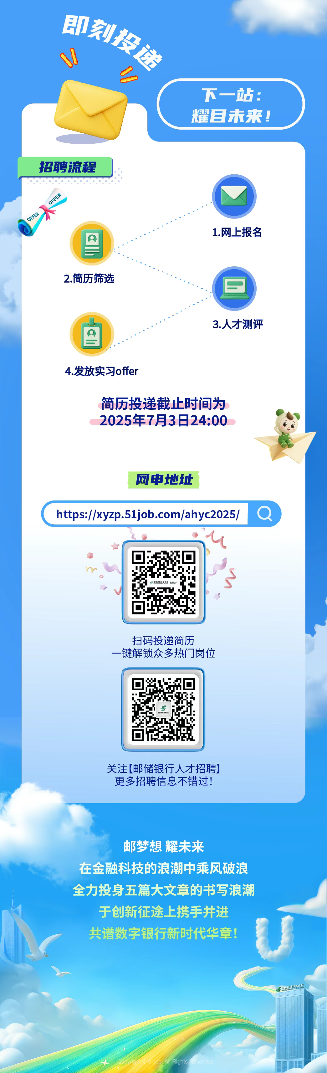 2025年中國郵政儲蓄銀行安徽省分行暑期實習(xí)生招募公告