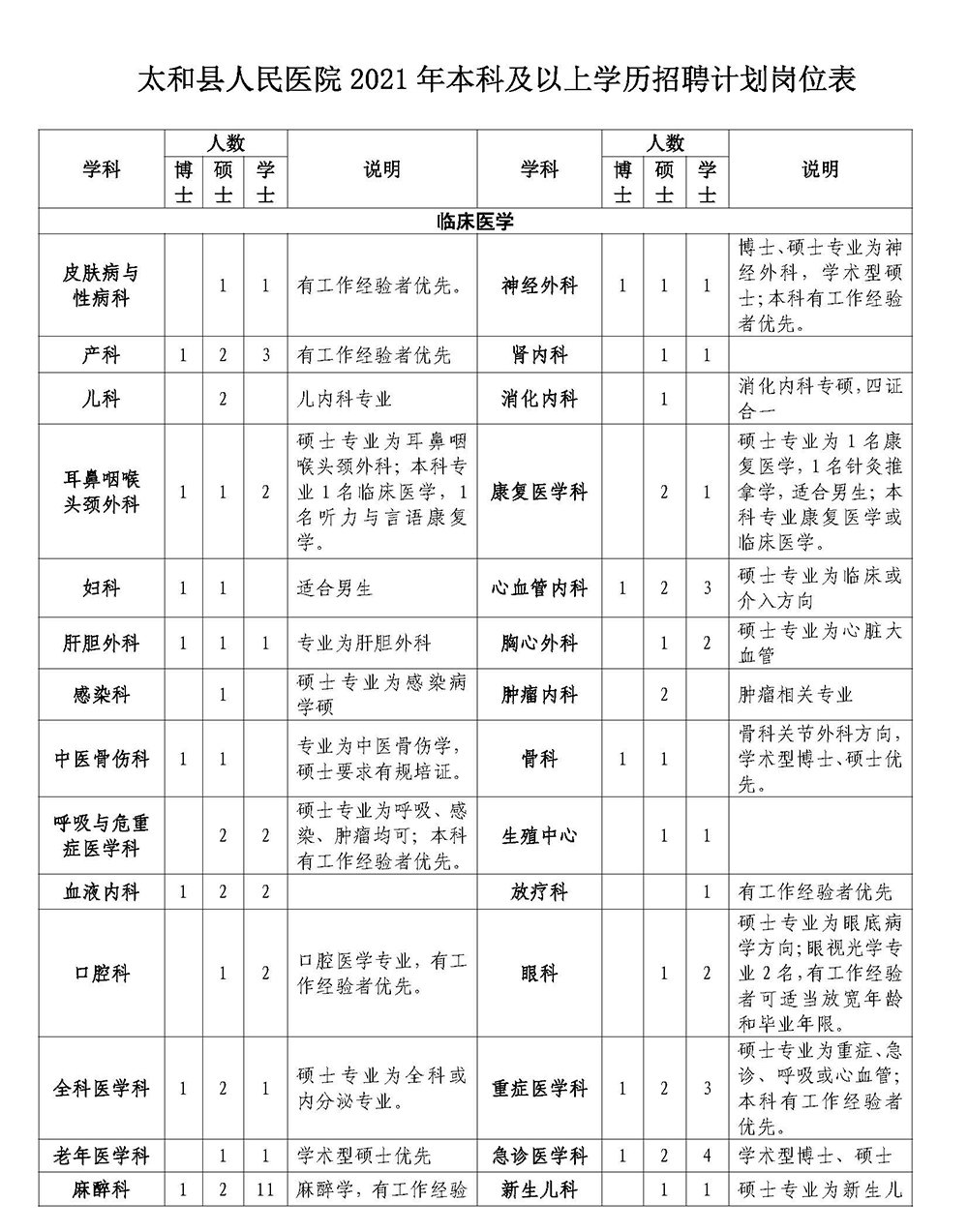 2021年阜陽太和縣人民醫(yī)院招聘公告(本科及以上學(xué)歷)