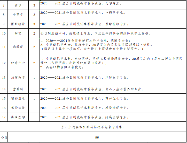 符合臨床專業(yè)全日制統(tǒng)招碩士及以上學(xué)歷或具有臨床專業(yè)副主任醫(yī)師及以上資格,享受縣政府人才引進(jìn)相關(guān)政策待遇。