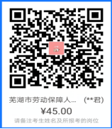 4、掃碼繳費。應(yīng)聘者掃碼繳納報名費用45元。請用支付寶掃碼后添加備注,注明考生姓名、報考崗位。根據(jù)安徽省財政廳、安徽省物價局財綜〔2013〕2568號文件規(guī)定,按每人每科45元標(biāo)準(zhǔn)收取筆試費用。享受國家最低生活保障金城鎮(zhèn)家庭和農(nóng)村特困家庭的報考人員享受減免考試費用政策(先交后退,退費時需提供相關(guān)材料)。