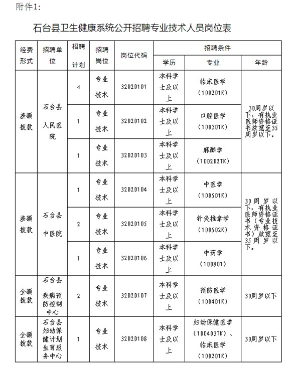 1、石臺縣衛(wèi)生健康系統(tǒng)公開招聘專業(yè)技術(shù)人員崗位表