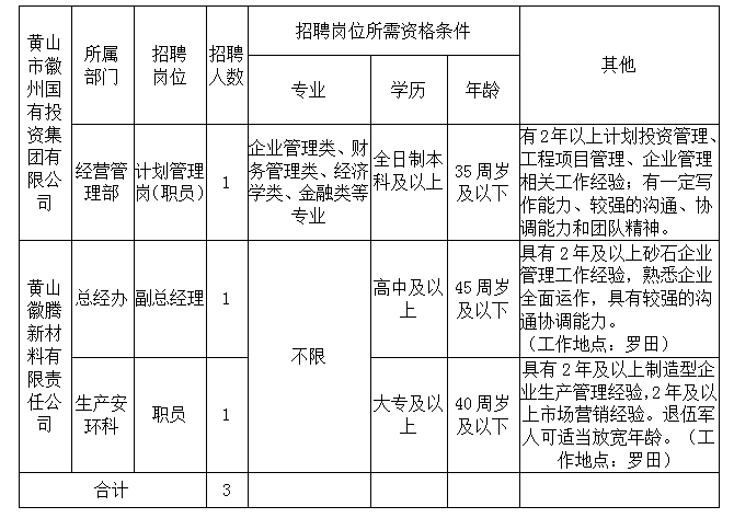 2021-09-14 20:46:58閱讀()黃山市徽州國有投資集團(tuán)有限公司徽州國投集團(tuán)及下屬子公司因工作需要,面向社會(huì)公開招聘3名工作人員,其中集團(tuán)本部工作人員1名、徽騰新材料公司2名?,F(xiàn)將有關(guān)招聘事宜公告如下: