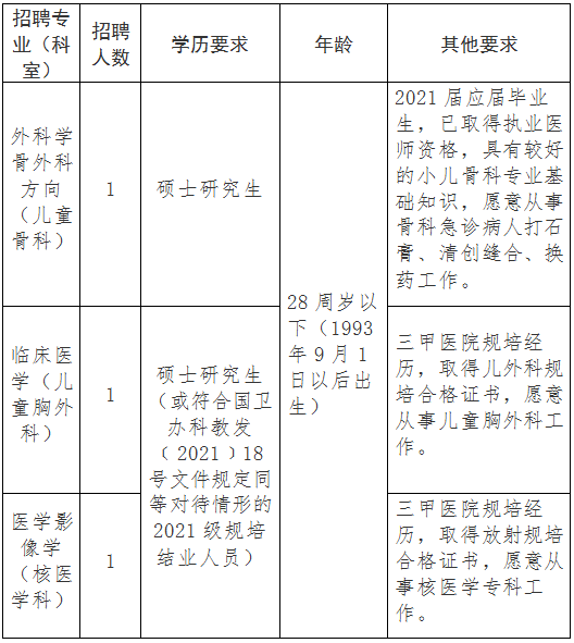 2021年安徽省兒童醫(yī)院自主招聘部分崗位工作人員公告