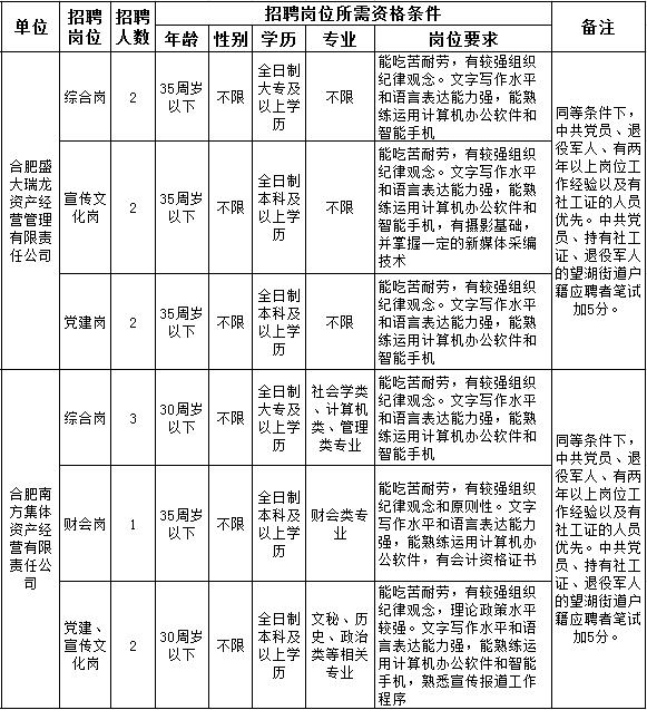 2021年合肥盛大瑞龍資產(chǎn)經(jīng)營管理有限責(zé)任公司、合肥南方集體資產(chǎn)經(jīng)營有限責(zé)任公司招聘