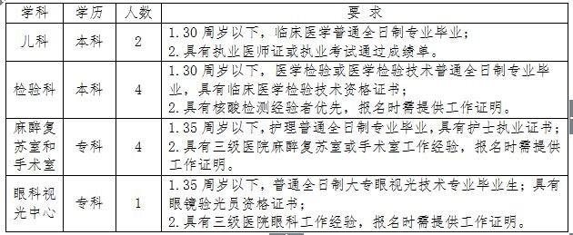 2021-12-07 20:34:27閱讀()太和縣人民醫(yī)院根據(jù)2021年招聘計劃,結(jié)合疫情期間急需崗位需要,經(jīng)2021年12月3日院長辦公會議研究,現(xiàn)對兒科、檢驗科、麻醉復(fù)蘇室、手術(shù)室和眼科視光中心急需人員面向社會公開招聘。