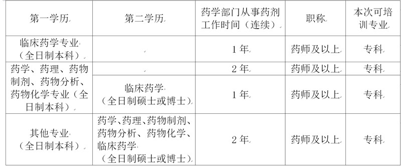 (一)已完成臨床藥師通科培訓(xùn),并已取得通科培訓(xùn)證書,且同時(shí)滿足下表要求