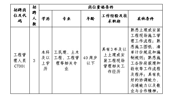 現(xiàn)根據(jù)公司項(xiàng)目開發(fā)需要,招聘派遣制員工3名。有關(guān)要求及事項(xiàng)公告如下: