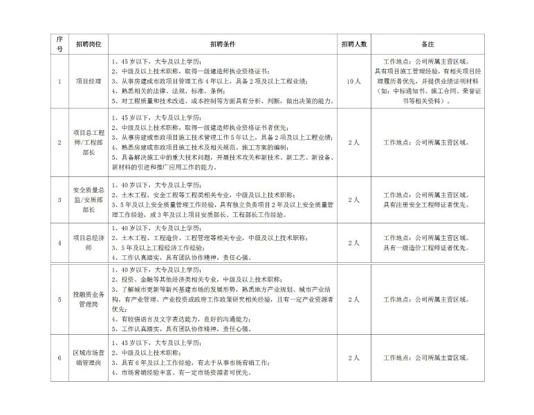 公司建立了以南京、蘇州、蚌埠等地為主的華東區(qū)域市場,重慶、成都等地為主的西南區(qū)域市場,西安、寶雞、漢中為主的陜西區(qū)域市場,銀川、蘭州、白銀等地為主的西北區(qū)域市場。為滿足企業(yè)發(fā)展需要,強(qiáng)化區(qū)域市場經(jīng)營開發(fā)及施工生產(chǎn)管理,現(xiàn)已在廣州、鄭州、深圳等地設(shè)立了區(qū)域指揮部,實(shí)現(xiàn)人力資源對生產(chǎn)運(yùn)營的有效支撐,擬面向社會招聘具有一級建造師執(zhí)業(yè)資格及相關(guān)專業(yè)技術(shù)的管理人才。