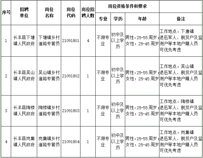 6.原則上不跨越鄉(xiāng)鎮(zhèn)(區(qū))招募,就近從轄區(qū)內(nèi)常住人員中選聘。退伍軍人、脫貧戶及監(jiān)測戶等本地戶籍人員可優(yōu)先考慮。