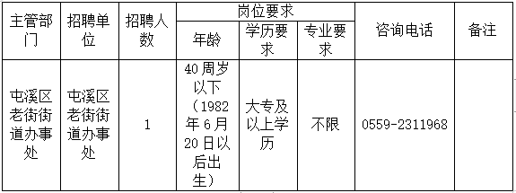 為切實加強街道工作人員的隊伍管理和建設,解決工作人員不足問題,根據(jù)《屯溪區(qū)機關事業(yè)單位編外人員管理辦法》規(guī)定和要求,結合屯溪區(qū)老街街道辦事處工作實際所需,經(jīng)核準,屯溪區(qū)老街街道辦事處委托黃山市仁和人力資源服務有限公司面向社會公開招聘1名編外人員?,F(xiàn)將有關事項公告如下: