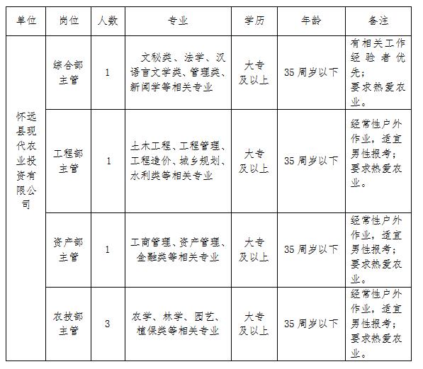 2020-06-19 22:53:01閱讀()懷遠縣人民政府懷遠縣現(xiàn)代農(nóng)業(yè)投資有限公司隸屬于懷遠現(xiàn)代農(nóng)業(yè)綜合開發(fā)示范區(qū),是懷遠縣政府出資設立的國有獨資公司。隨著公司業(yè)務的發(fā)展,公司現(xiàn)有人員已經(jīng)無法滿足日常工作需求,為了更廣泛地選拔優(yōu)秀人才,擬面向社會公開招聘6名公司工作人員,具體招聘方案如下: