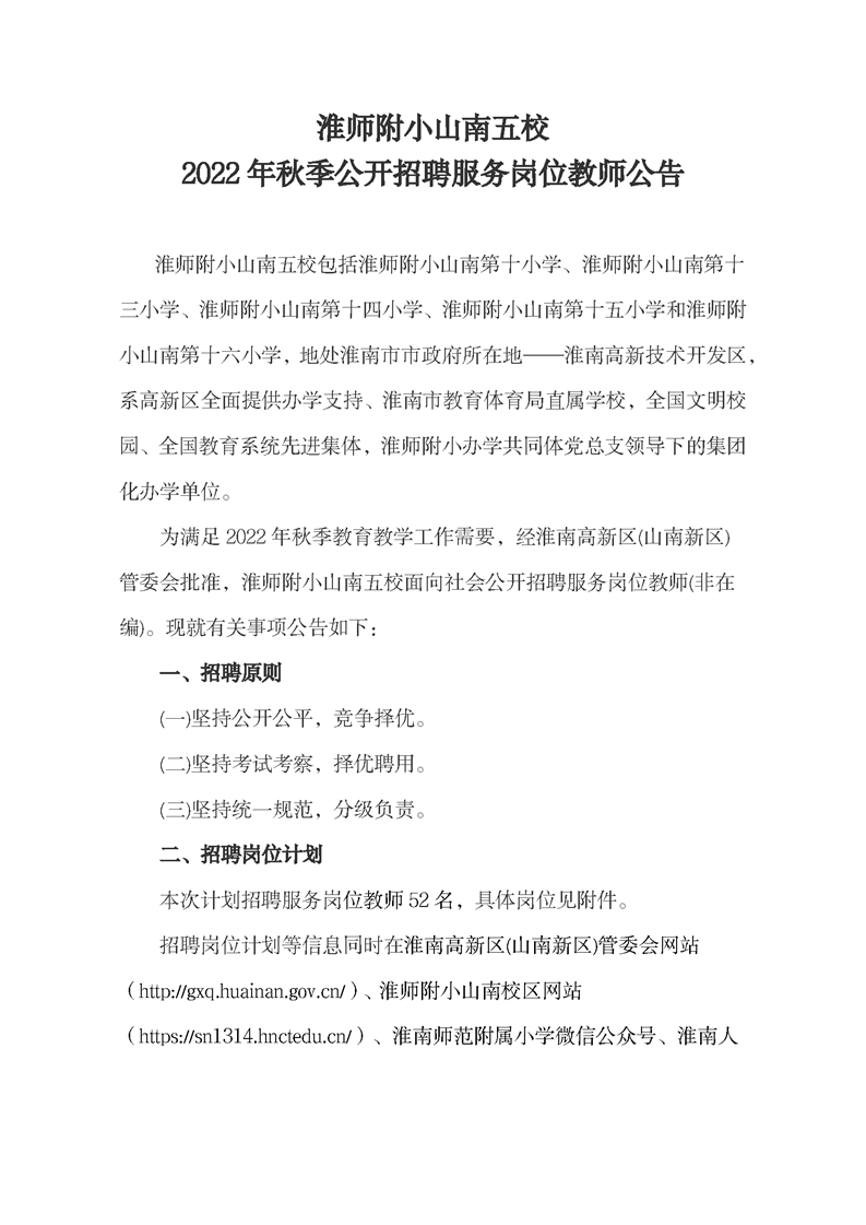 2022年淮南高新區(qū)(山南新區(qū))淮師附小山南五校公開招聘服務崗位教師公告