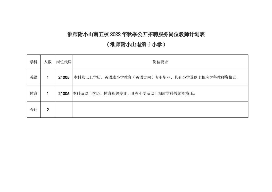 為滿足2022年秋季教育教學工作需要,經(jīng)淮南高新區(qū)(山南新區(qū))管委會批準,淮師附小山南五校面向社會公開招聘服務崗位教師(非在編)?,F(xiàn)就有關事項公告如下: