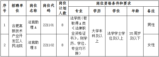 (六)具有法學類大學本科及以上學歷,法學學士學位及以上;若取得A類《法律職業(yè)資格證書》,則學歷、學位、專業(yè)均不限。