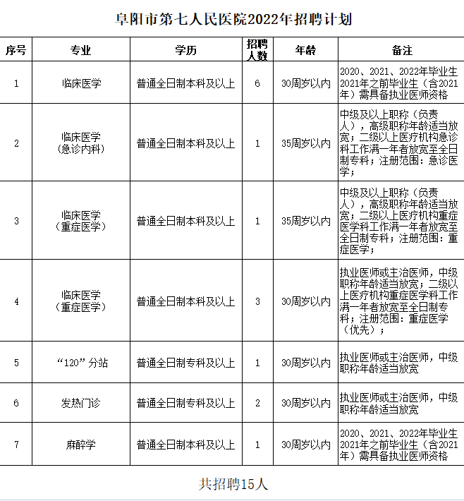 2022年阜陽(yáng)市第七人民醫(yī)院招聘公告