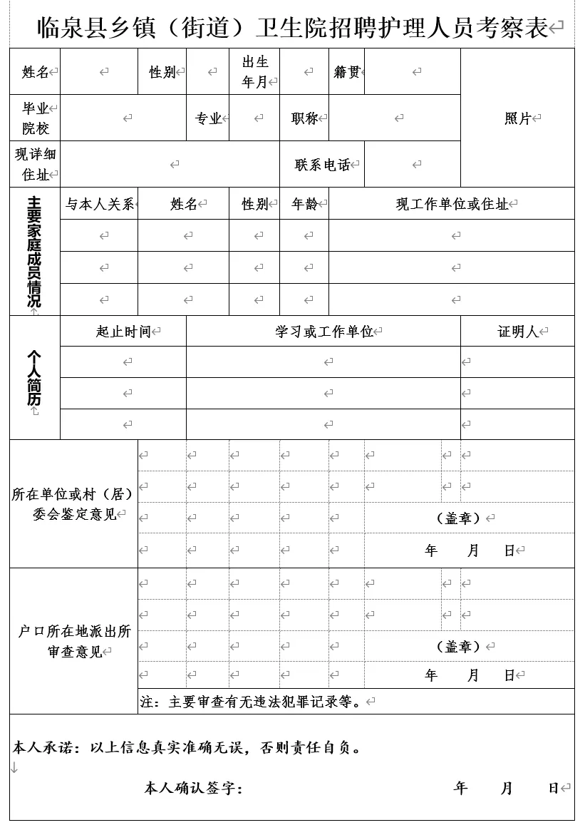 1、臨泉縣鄉(xiāng)鎮(zhèn)(街道)衛(wèi)生院招聘護理人員報名表