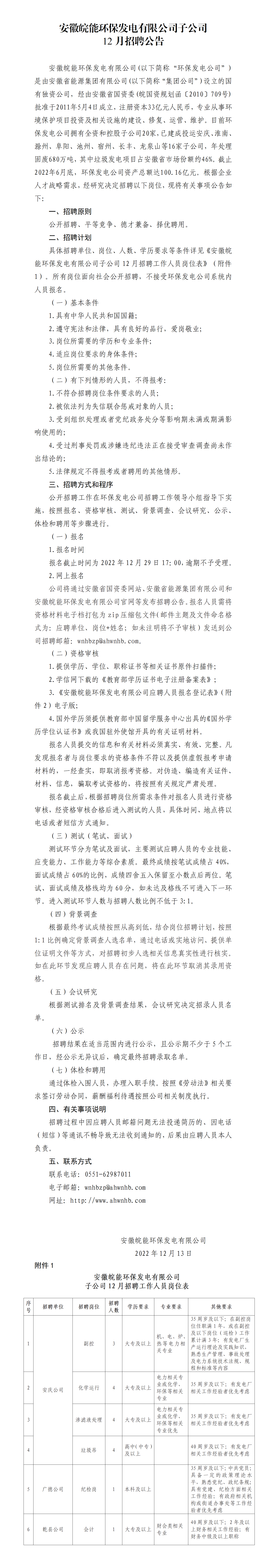 2022年安徽皖能環(huán)保發(fā)電有限公司子公司招聘公告