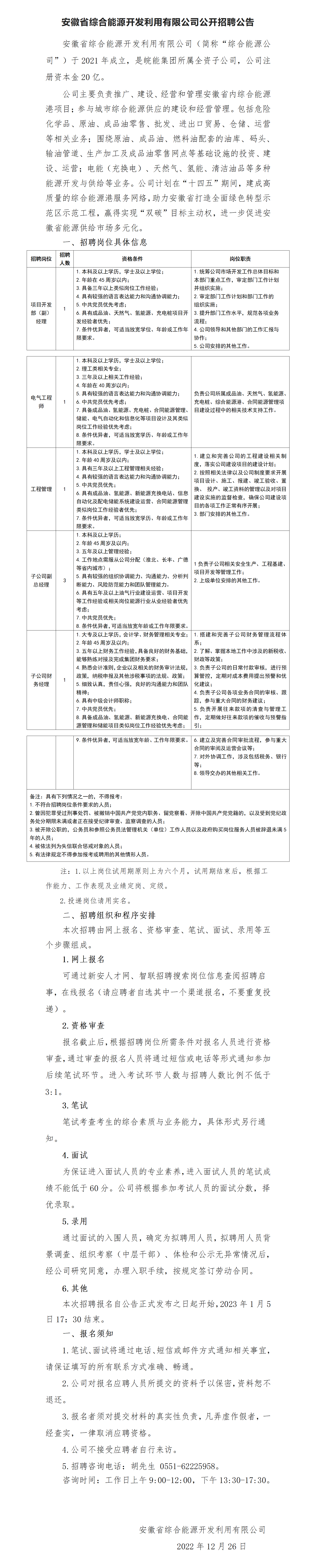 2022年安徽省綜合能源開發(fā)利用有限公司公開招聘公告