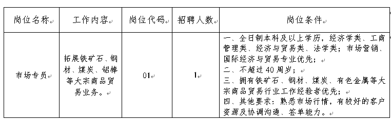 銅陵市建投商貿(mào)有限責(zé)任公司于2018年4月26日注冊(cè)成立,為銅陵市國(guó)有企業(yè)。現(xiàn)因業(yè)務(wù)發(fā)展需要,面向社會(huì)招聘勞務(wù)派遣工作人員1名。具體事項(xiàng)公告如下: