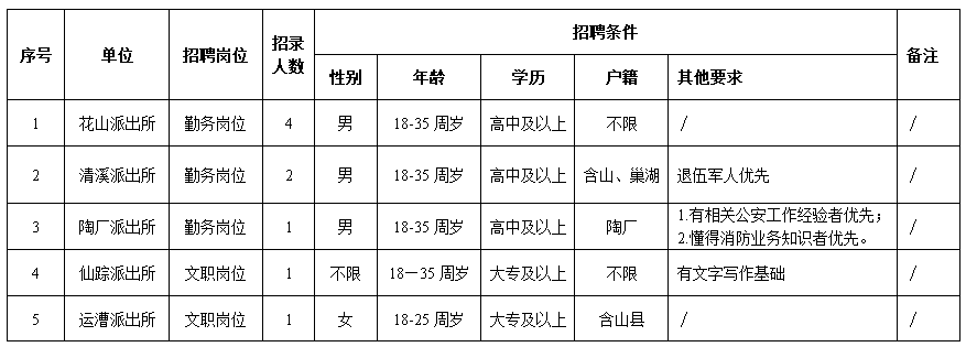 詳見附件1《含山縣公安局招聘警務輔助人員職位表》