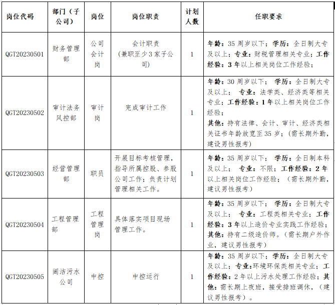 公開招聘人員崗位表中涉及“年齡條件”的如“35周歲(含)以下”為“1988年5月31日(含)以后出生”(其他涉及年齡計算的依此類推);工作經(jīng)歷要求,截止時間為2023年5月31日。