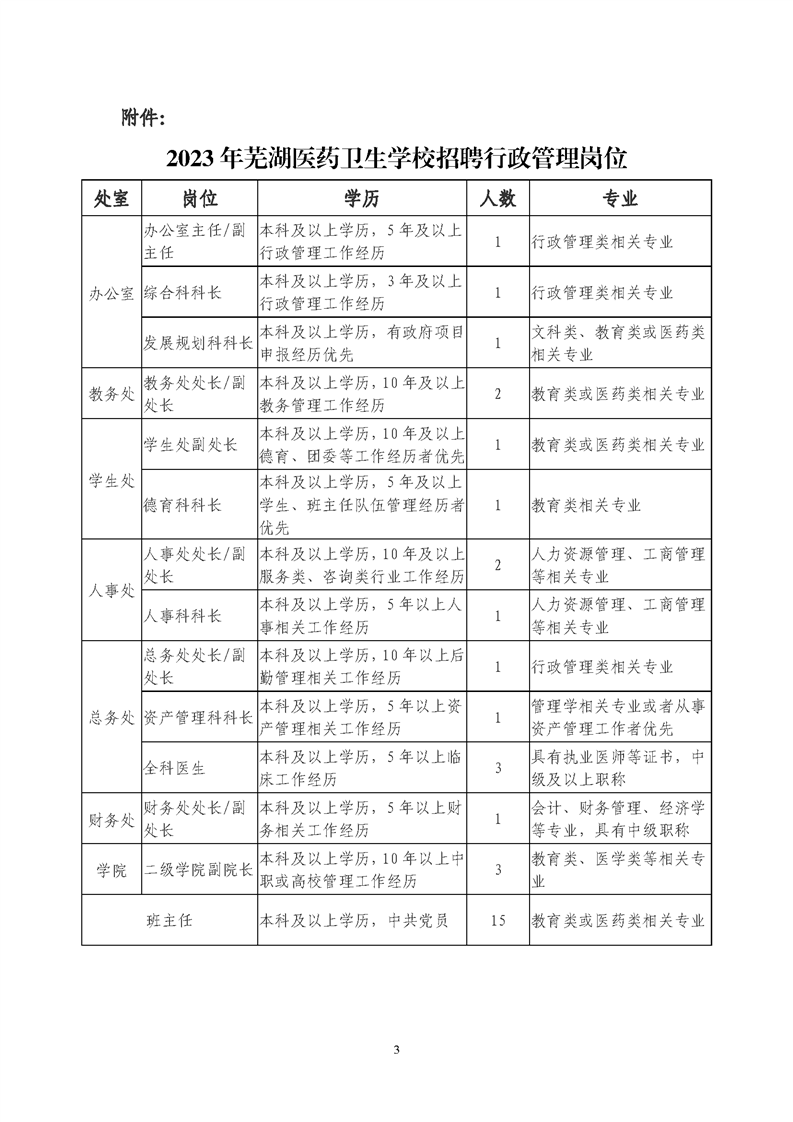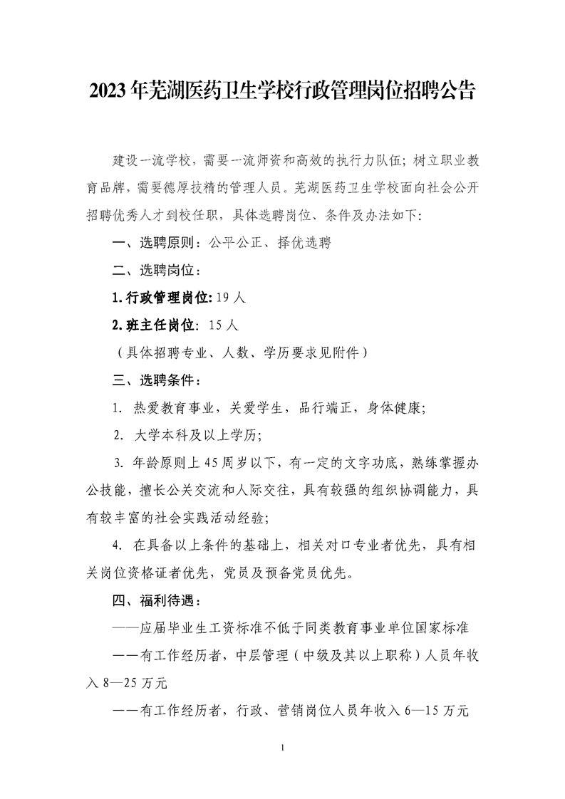 2023年蕪湖醫(yī)藥衛(wèi)生學(xué)校行政管理崗位招聘公告