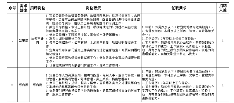 為滿(mǎn)足公司發(fā)展需要,根據(jù)《合肥市地方鐵路投資建設(shè)有限公司員工招聘管理辦法》的要求,結(jié)合公司的實(shí)際情況,擬面向社會(huì)公開(kāi)招聘2名工作人員,具體招聘實(shí)施方案如下: