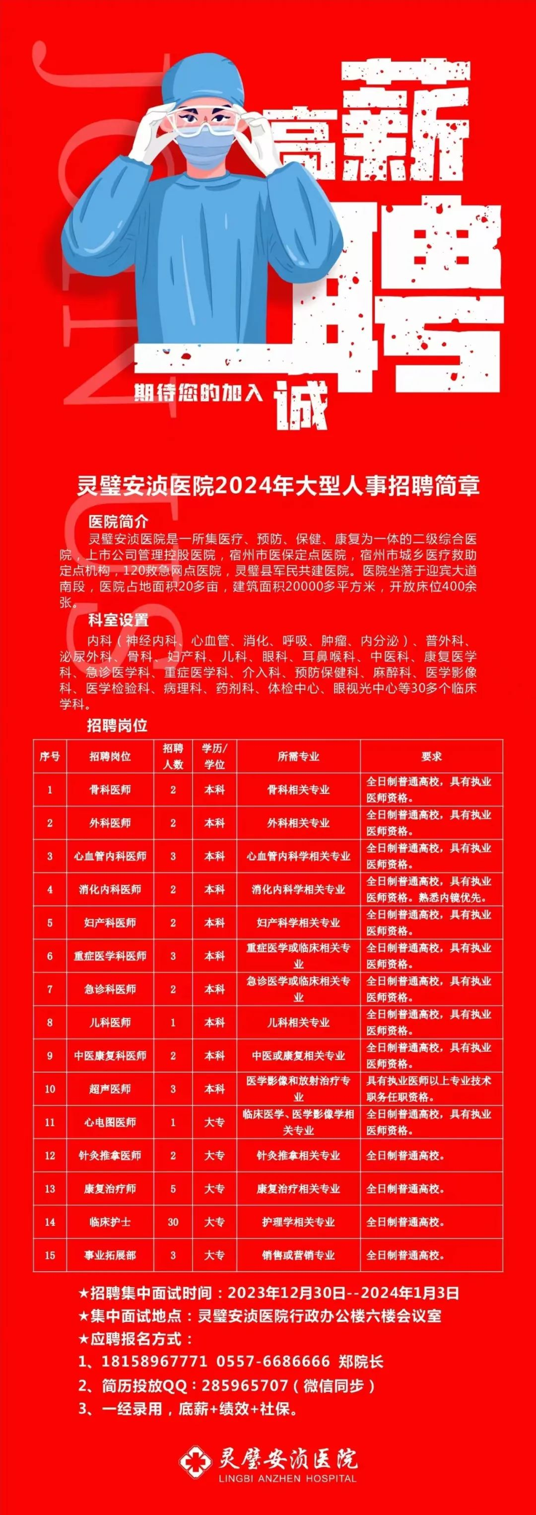 靈璧安湞醫(yī)院是一所集醫(yī)療、預(yù)防、保健、康復(fù)為一體的二級綜合醫(yī)院,上市公司管理控股醫(yī)院,宿州市醫(yī)保定點醫(yī)院,宿州市城鄉(xiāng)醫(yī)療救助定點機構(gòu),120救急網(wǎng)點醫(yī)院,靈肇縣軍民共建醫(yī)院。醫(yī)院坐落于迎賓大道南段,醫(yī)院占地面積20多畝,建筑面積20000多平方米,開放床位400余