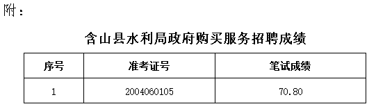 2020-04-20 18:09:15閱讀()含山縣人民政府因部分考生放棄資格,根據(jù)《縣水利局公開招聘政府購買服務(wù)工作人員公告》,按照筆試成績從高到低順序,遞補(bǔ)以下考生,公示期限3天,自2020年4月14日至2020年4月16日。