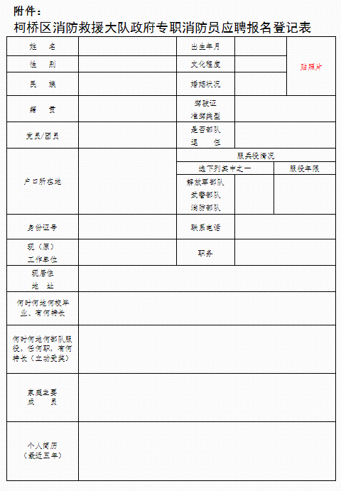 全區(qū)共招聘政府專職消防員50名,包含駕駛員10名、戰(zhàn)斗員34名,通信員6人。報名表見最后附件